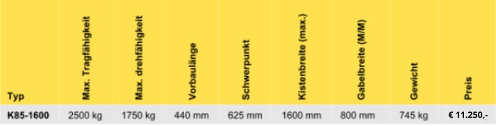- Einstellbar für Kistenhöhe von 850 - 1250 mm
